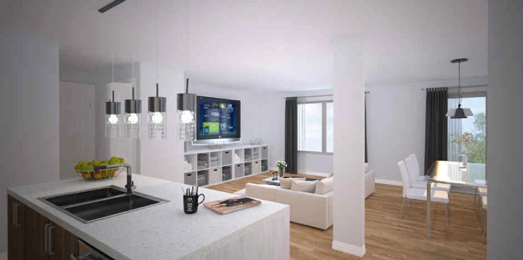 Logements 4 ½ luxueux clé en main à partir de 1350$ par mois. Situé près d'espace vert, de sentiers et d'un jardin communautaire, le tout dans un secteur familial. Inclus une entrée intérieur et un cabanon privé.